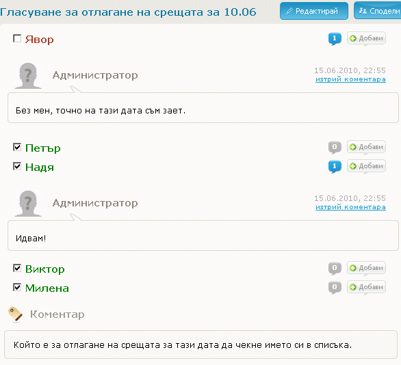 Можете бързо да създадете въпрос за гласуване и веднага до го споделите с приятели.